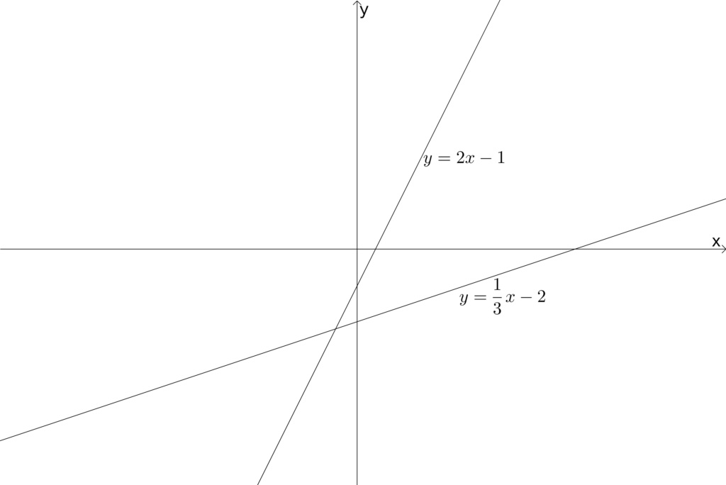 よって交点の座標は\((-\frac{3}{5},-\frac{11}{5})\)