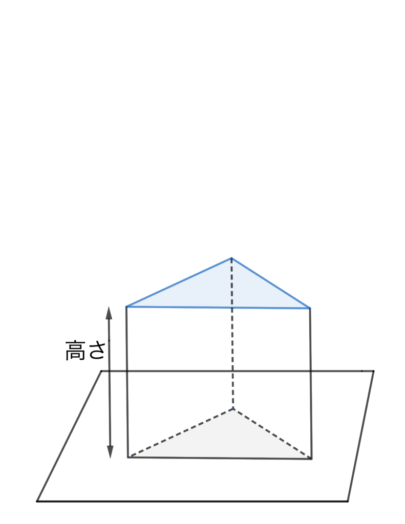 柱の体積は、\(\text{底面積}\times\text{高さ}\)で求まります。