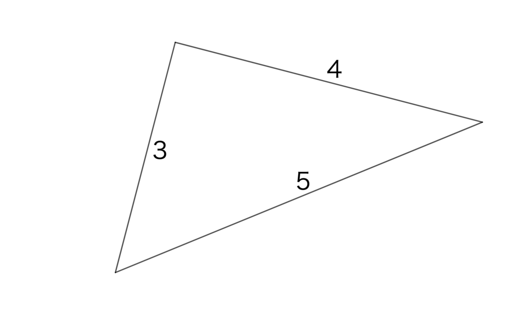 例えば図のように長さが決まった3本の辺を用意して、三角形を作ろうとすると1種類の三角形しか作ることができません。(イメージしづらい方は、マッチ棒などを使ってやってみてください。)