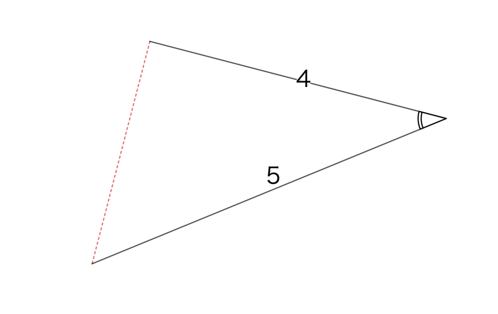 図の、黒い実線のように2つの辺の長さとその間の角を固定してみましょう。